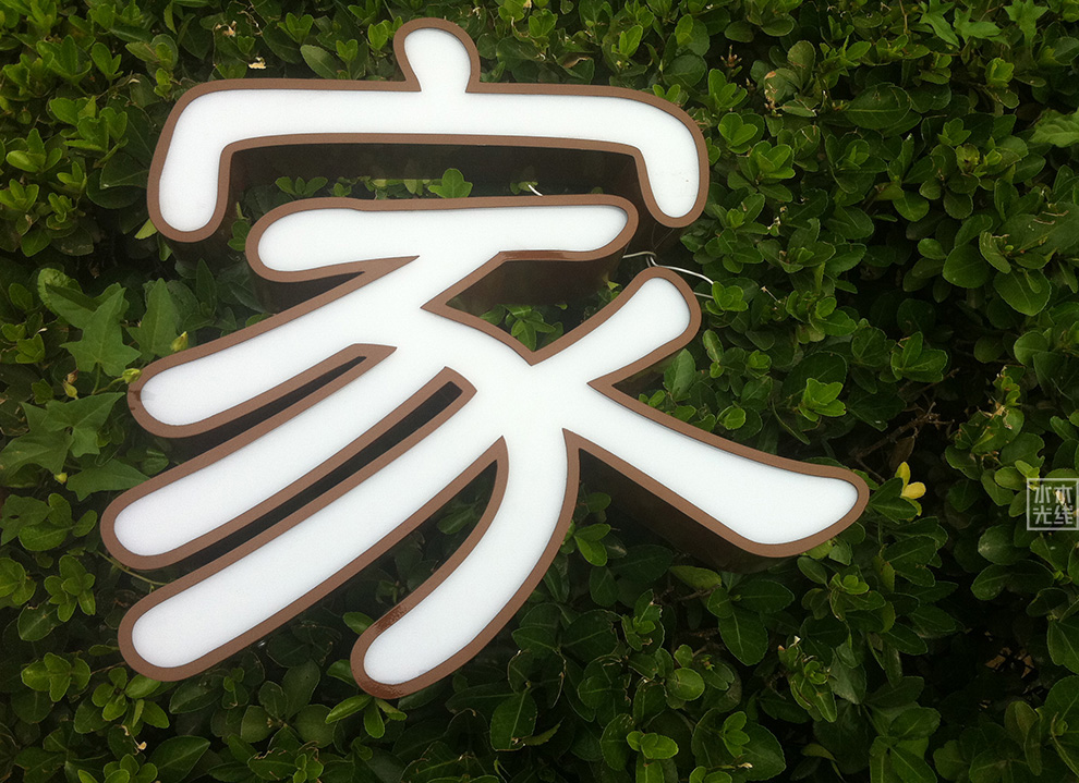 换了名字,原来是十六号,后来请风水先生给算了算,改成十七号。繁体篆书,金属箱体,内装LED灯