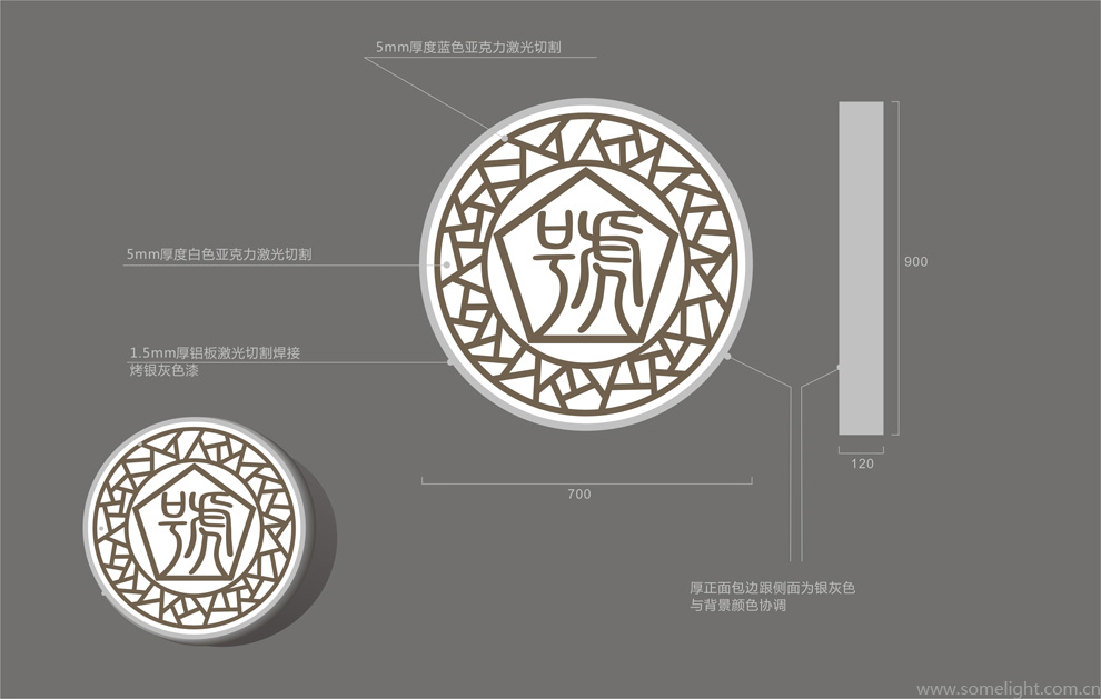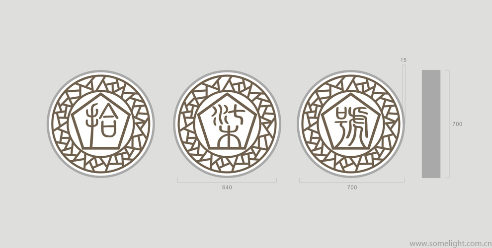 ,文字跟纹理 亚克力切割喷漆。因为前面有细竹,有江南感觉,想到用这个冰裂纹纹理。后因店名不知