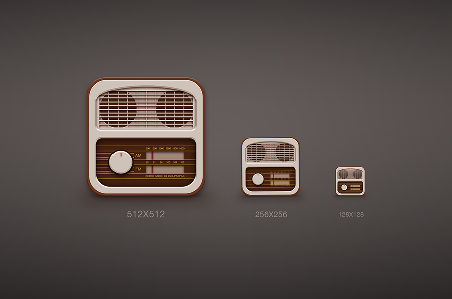 网购时看到一个很喜欢的收音机,就画了枚图标 感觉东西少了点,所以拿出一个PSD做分享~